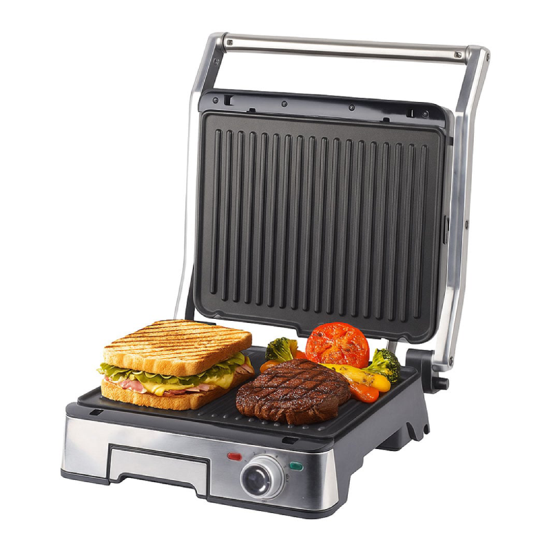 Poate fi folosit inchis ca gratar sau deschis complet ca plita