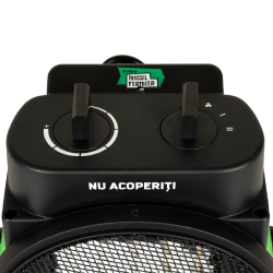 Aparatul are doua trepte de putere, permitand ajustarea consumului in functie de necesar, precum si un termostat reglabil pentru control exact al temperaturii. De asemenea, este prevazut cu sistem de protectie la supraincalzire si ventilator integrat, pentru distribuirea uniforma a aerului cald si functionare in conditii de siguranta.