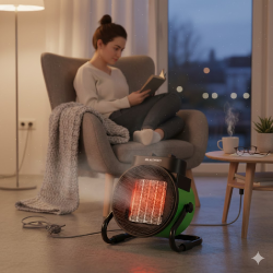 Designul compact si greutatea redusa fac ca aeroterma sa fie usor de transportat, fiind o solutie potrivita pentru incalzirea locuintelor, birourilor sau a altor spatii interioare.