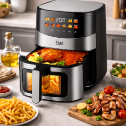 Friteuza cu aer cald iHunt Bro Air Fryer Ultra 6.5 L este un aparat modern si versatil, proiectat pentru gatit rapid si sanatos, cu un consum redus de ulei.