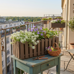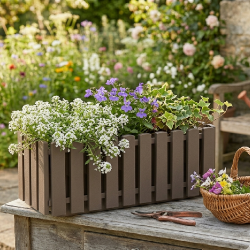 Jardiniera Fency 50 este accesoriul ideal pentru a infrumuseta pervazul, balconul sau terasa, oferind un aspect de gardulet de lemn.