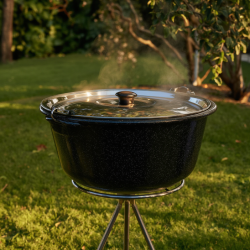 Capac din inox, cu diametru de 41 cm, potrivit pentru ceaune de 13–14 litri.