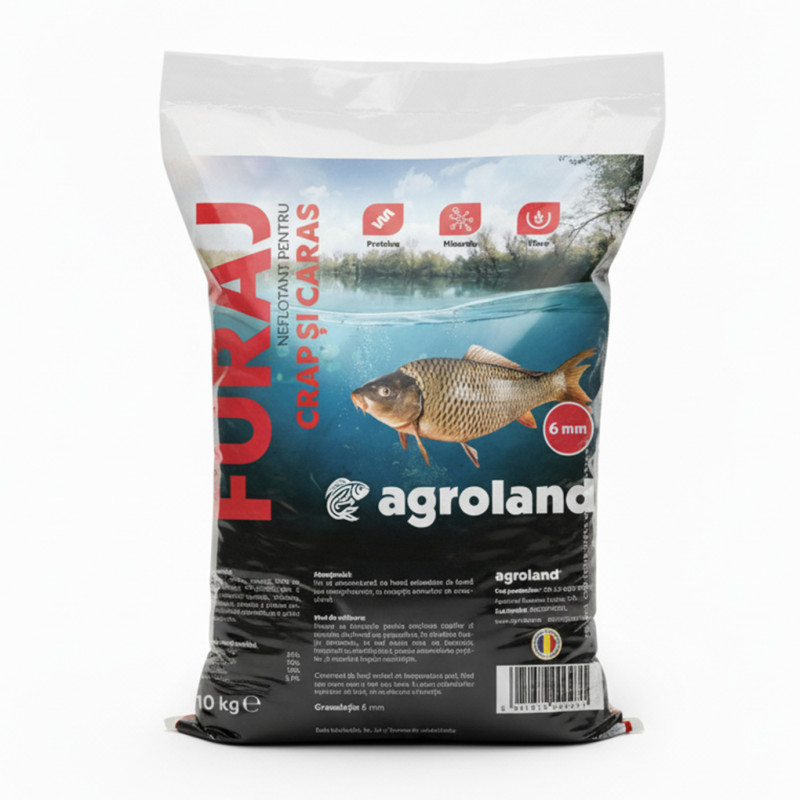 Furaj neflotant pentru crap și caras, cu nutrienți de calitate, conținut mare de proteină, pentru peștii crescuți în ferme sau în gospodărie. Granulație 6 mm.