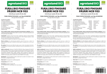 Furaj Bio Finisare Pasari – NCB1153.20 este un furaj complet ecologic destinat puilor in etapa finala de crestere (peste 46 zile). Sustine dezvoltarea masei musculare si gustul final al carnii, fara OMG, antibiotice sau hormoni. Fabricat in Romania din cereale bio locale.