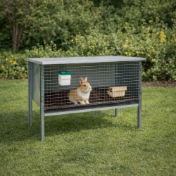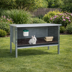 Cusca metalica pentru iepure pitic, practica si rezistenta, conceputa pentru adapostirea animalului in conditii de siguranta si confort.