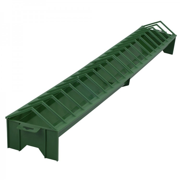 Hranitoare pentru pasari adulte din plastic cu lungimea de 100 cm, dotata cu grila anti - risipa, usor de utilizat si igienizat.
