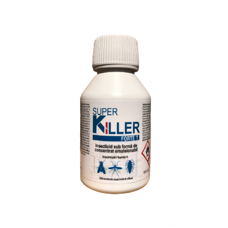 Super Killer Forte T este un insecticid concentrat cu spectru larg, eficient împotriva insectelor zburătoare și târâtoare, destinat utilizării atât în interior, cât și la exterior.