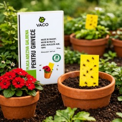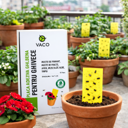 Capcana este destinata monitorizarii si capturarii daunatorilor din jurul plantelor cultivate in ghivece.