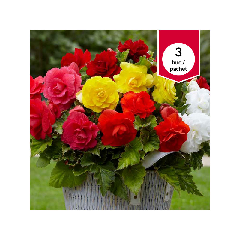 Begoniile sunt plante care prefera caldura, de aceea au nevoie de o udare regulata si semi-umbra. Tulpina creste pana la 20 - 40 cm. Pachetul contine 3 bulbi