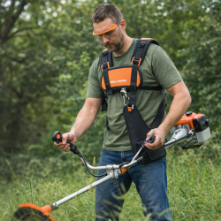 Distribuire uniforma a greutatii: hamul permite sustinerea motocoasei astfel incat greutatea sa fie distribuita echilibrat, diminuand presiunea asupra bratelor si spatelui.