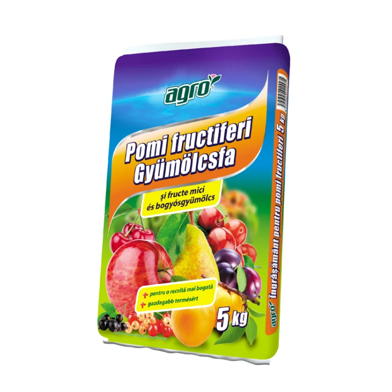 Ingrasamant pomi fructiferi Agro pentru primavara, granulat, 5 kg este un fertilizant mineral conceput special pentru hranirea pomilor fructiferi si a arbustilor fructiferi in perioada de vegetatie.