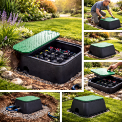 Aceste camine sunt concepute pentru montarea electrovalvelor solenoide, a fitingurilor, tevilor si a altor componente utilizate in sistemele de udare si irigatii peisagistice. Sunt prevazute cu un maner ergonomic brevetat, care permite deschiderea rapida si usoara a capacului dintr-o singura miscare, fara a fi necesare unelte.