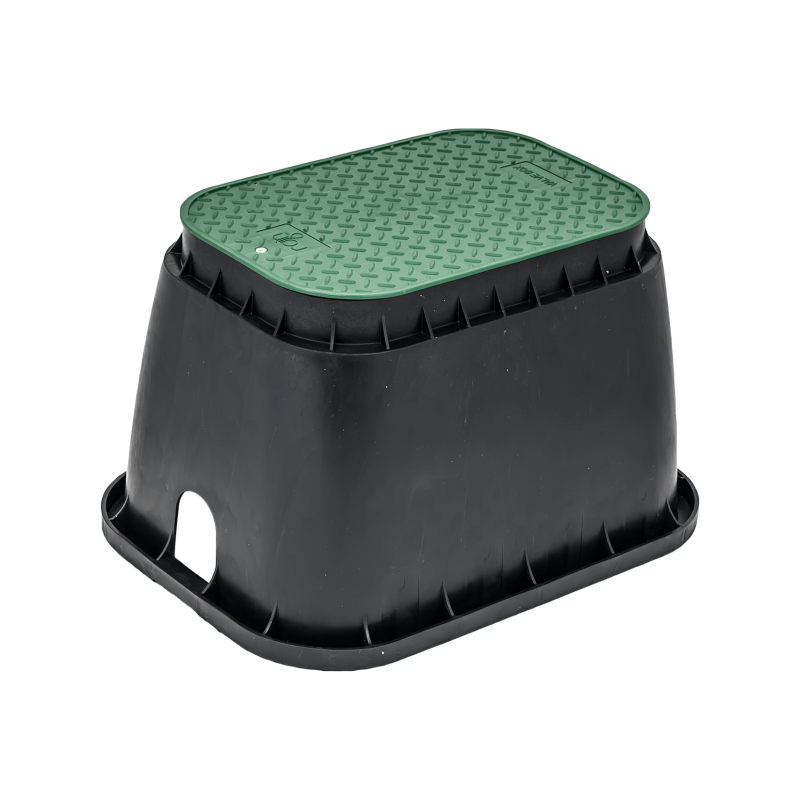In interior pot fi montate electrovalve solenoide, fitinguri, tevi si alte elemente utilizate in sistemele de udare sau irigatii peisagistice. Este prevazuta cu un maner ergonomic brevetat, care permite ridicarea usoara a capacului dintr-o singura miscare, fara a fi necesare unelte.