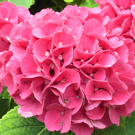 Hortensia Alpengluhen poate atinge înălțimea de 1,5 - 2m, de aceea poate fi plantată nu doar în grădină, dar și în ghivece pentru terase. Impresionează prin florile mari și rotunde, de culoare roz intens, cu petale deschise și ușor diafane. Florile apar vara și rezistă până toamna târziu. Preferă locurile semi-umbrite, cu sol umed și bine drenat. Rezistă la secetă și poate tolera temperaturi scăzute, până la -29°C.