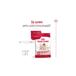 ROYAL CANIN Medium Adult este o hrana uscata completa si echilibrata, creata special pentru cainii adulti de talie medie (11–25 kg), cu varsta de peste 12 luni, oferindu-le sprijinul necesar pentru o viata activa si sanatoasa.