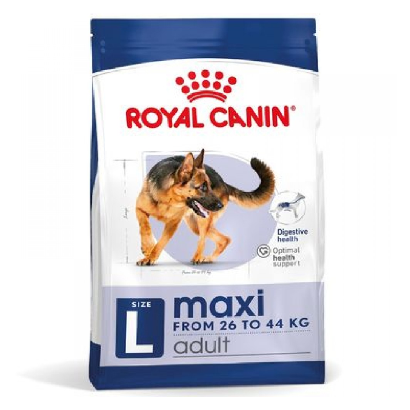 ROYAL CANIN Maxi Adult este o formula uscata echilibrata, conceputa pentru a sprijini sanatatea cainilor adulti de talie mare (26-44 kg), incepand cu varsta de 15 luni. Aceasta reteta include proteine de inalta calitate, fibre echilibrate si nutrienti esentiali care contribuie la digestie eficienta, mentinerea masei musculare si sanatatea sistemului osteo-articular. De asemenea, contine acizi grasi Omega-3 (EPA si DHA), vitamine si minerale menite sa ajute la mentinerea sanatatii pielii si a aspectului lucios al blanii. Combinatia ingredientelor este adaptata pentru a sustine un stil de viata activ si echilibrat al cainelui tau de talie mare.