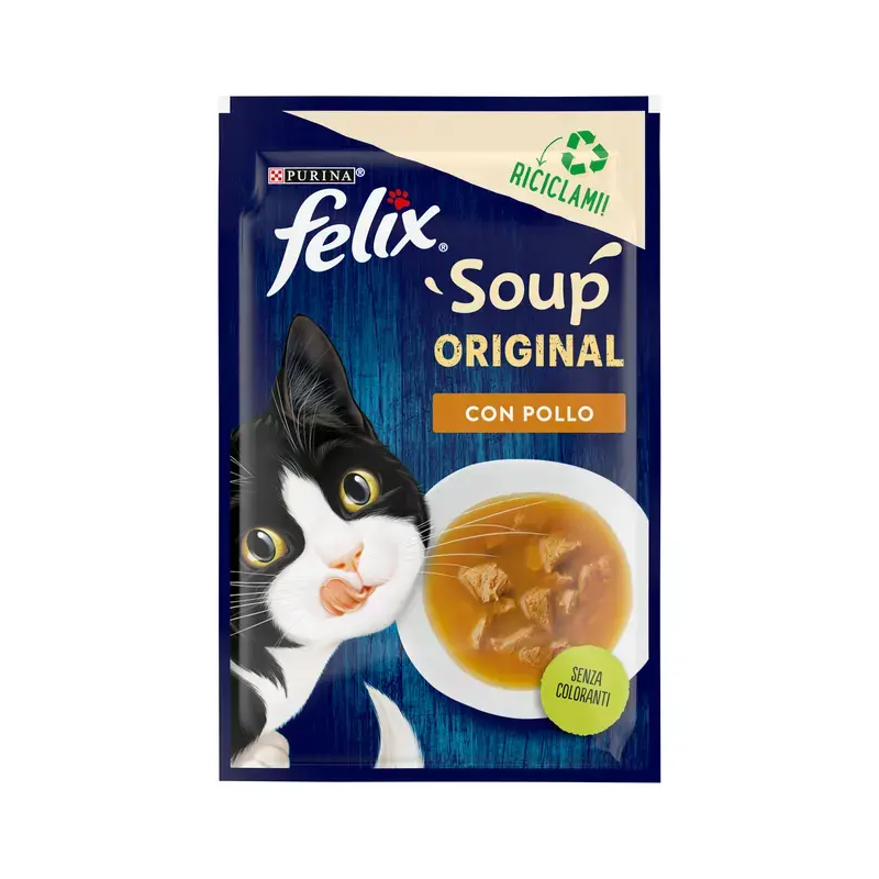 Gama irezistibila Felix Soup ofera bucatele apetisante intr-o supa delicioasa, cu retete suculente create special pentru cele mai nazdravane pisici.