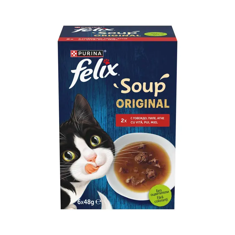 Gama irezistibila FELIX Soup ofera bucatele apetisante intr-o supa delicioasa, cu retete suculente create special pentru cele mai nazdravane pisici.