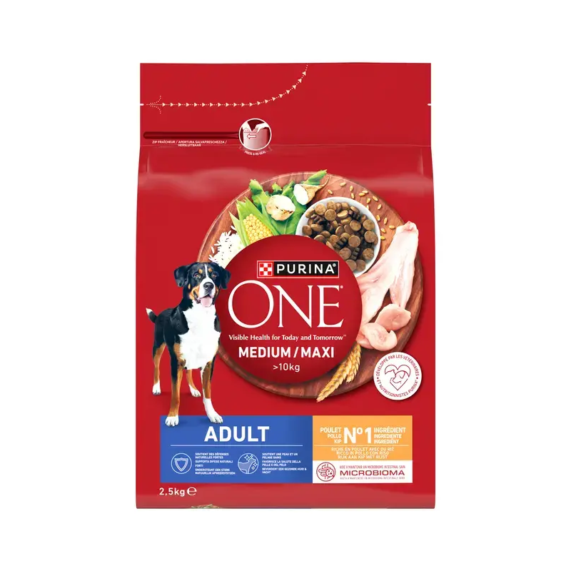 Cu pui ca ingredient principal pentru forta si energie, sfecla de zahar pentru un microbiom intestinal sanatos si acizi grasi omega 3 si 6 pentru o piele si o blana stralucitoare, aceasta hrana sustine sanatatea generala si imunitatea naturala a cainelui. Fara coloranti, arome sau conservanti artificiali, combina bucatile moi cu crochete crocante pentru o masa gustoasa si echilibrata, oferind sanatate vizibila acum si in viitor.