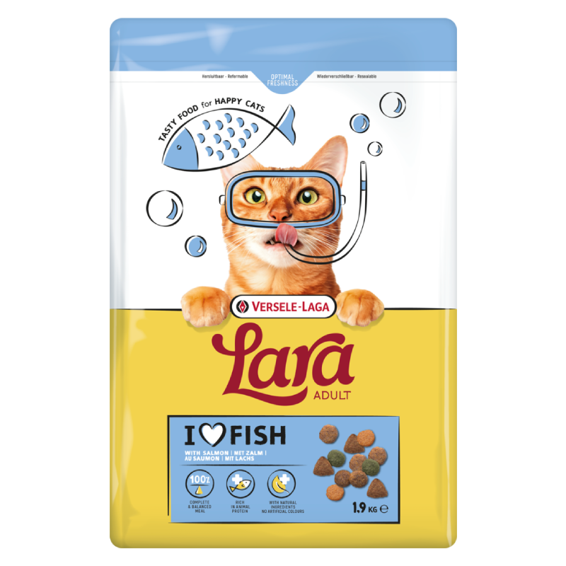 Lara adult cu somon sunt bobite crocante, special create pentru pisicile care adora gustul de peste.