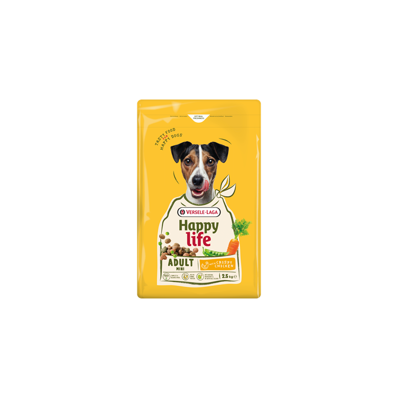 Happy Life Adult Mini cu Pui este o hrana variata si echilibrata, special conceputa pentru cainii adulti de talie mica, plini de energie. Aceasta ofera toti nutrientii necesari pentru a mentine sanatatea si vitalitatea catelului tau.