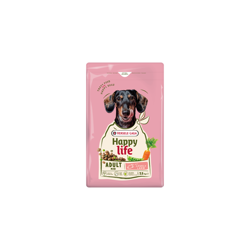 Happy Life Adult Mini cu miel este o hrana completa si echilibrata, special dezvoltata pentru cainii adulti de talie mica.
