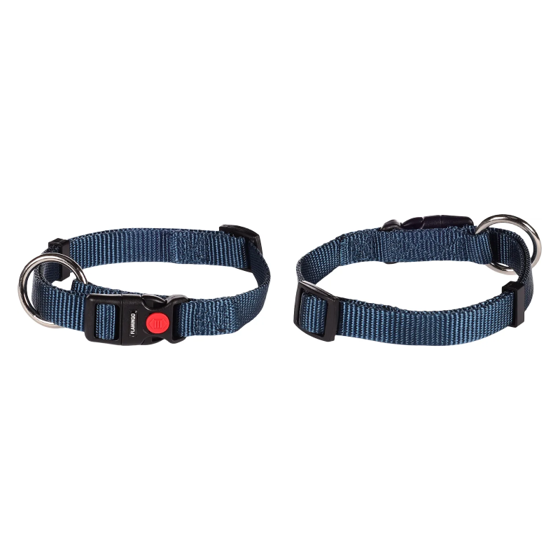 Zgarda textila pentru caini, cu catarame pentru reglare, usor de prins la gat, rezistenta.