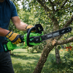 Datorita alimentarii pe baterie, ofera libertate de miscare, fara cabluri si fara emisii, fiind ideala pentru taierea crengilor, toaletarea pomilor sau pregatirea lemnelor pentru foc.